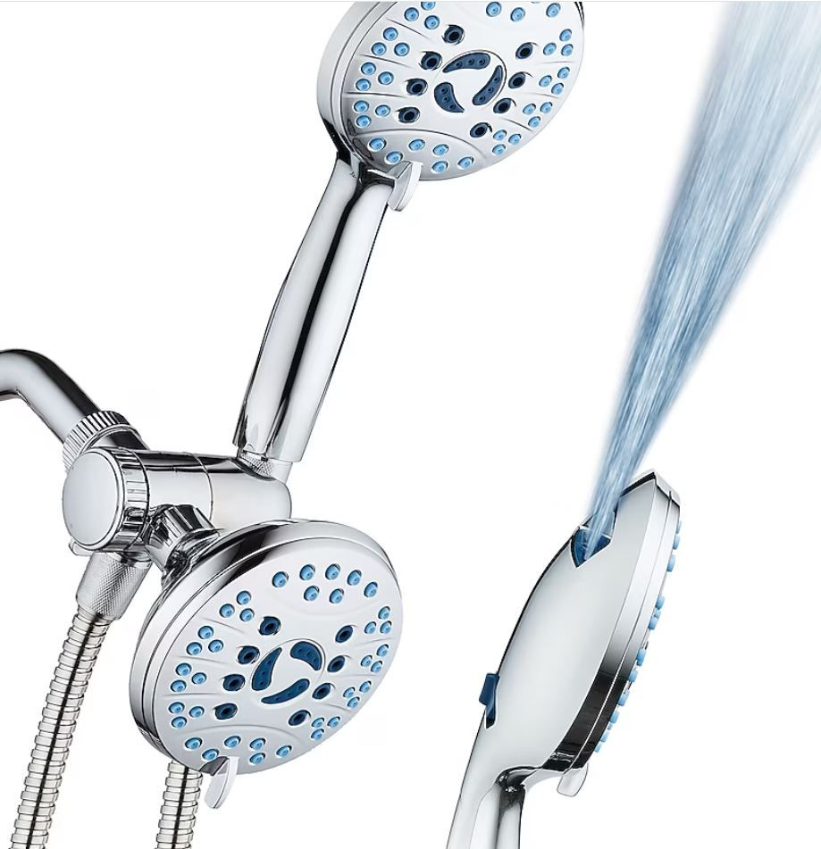 Pommeau de douche double/combiné rond chromé AquaCare de 4,5 po